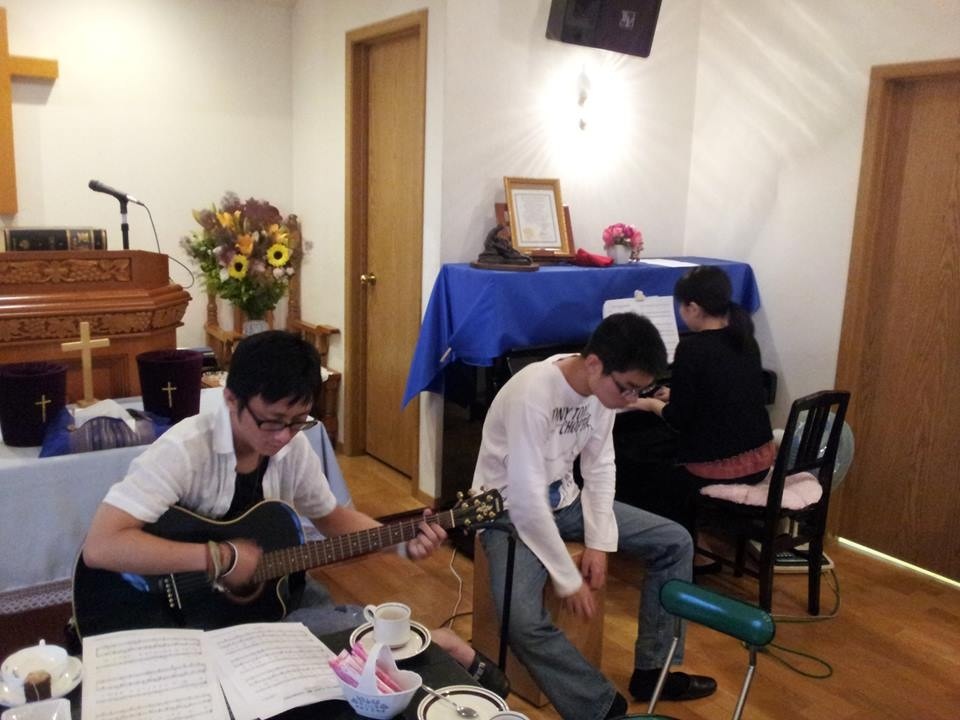 その後、毎週木曜日に花園教会で行われている黙想会に参加し、賛美の奉仕もさせていただきました。